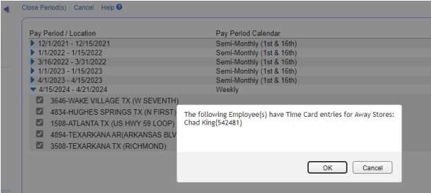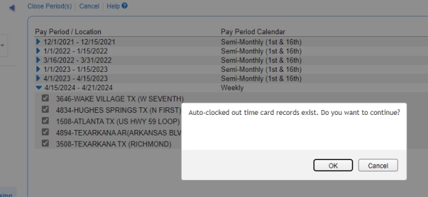 You might receive a few prompts when closing the payroll. This type of prompt is OK, and you can hit OK: